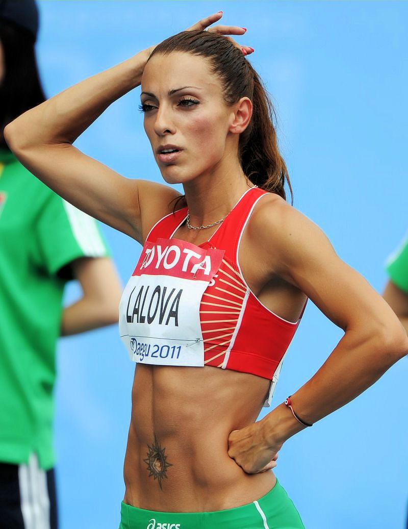 This was Ivet Lalova warming up before a preliminary heat of the 60m sprint at the IAFF 2012 Indoor Track Championships in Istanbul back in March. She didn’t end up winning a medal there, but she will be competing for Bulgaria in both the 100m and the 200m events at the 2012 Olympics in London.